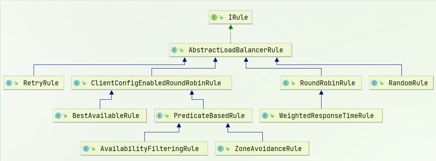 负载均衡的规则都定义在IRule接口中,而IRule有很多不同的实现类: