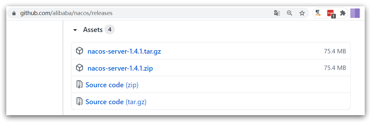 在Nacos的GitHub页面,提供有下载链接,可以下载编译好的Nacos服务端或者源代码:
