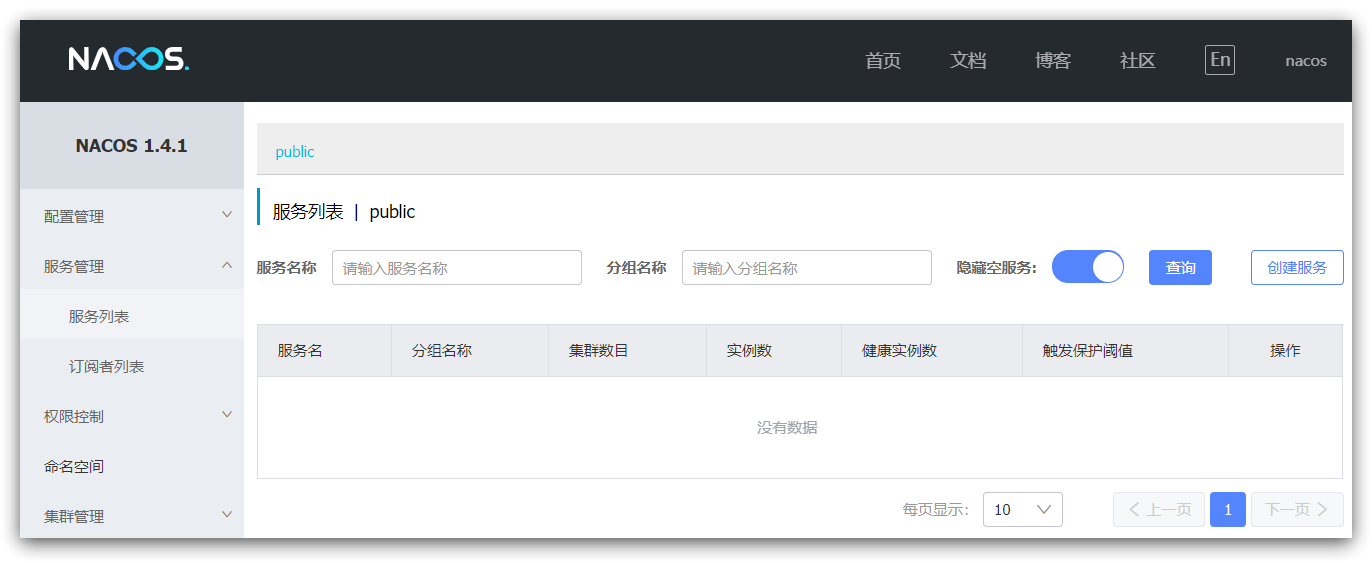 默认的账号和 都是nacos,进入后: