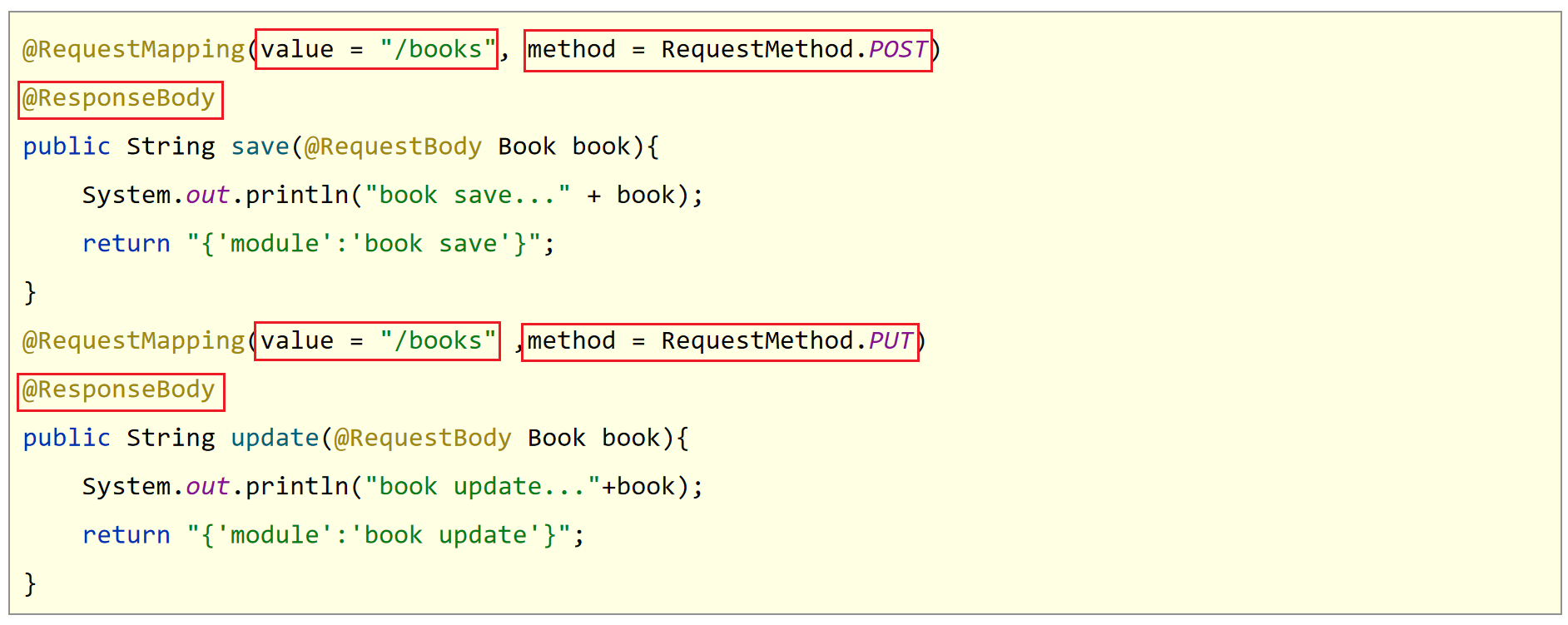 做法:在Controller中定义方法时设定"http请求动作(请求方式)"和"设定请求参数(路径变量)"
