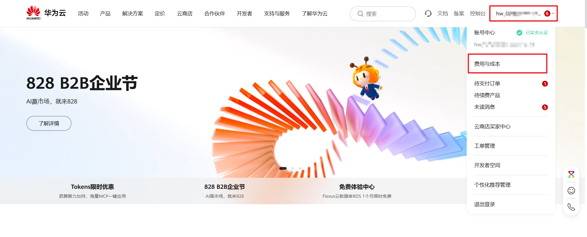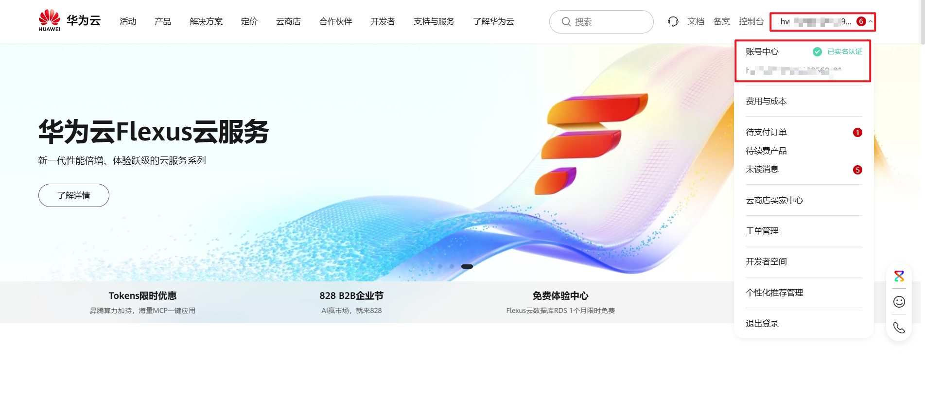 1. 打开https://www.huaweicloud.cn/,登录华为云账号