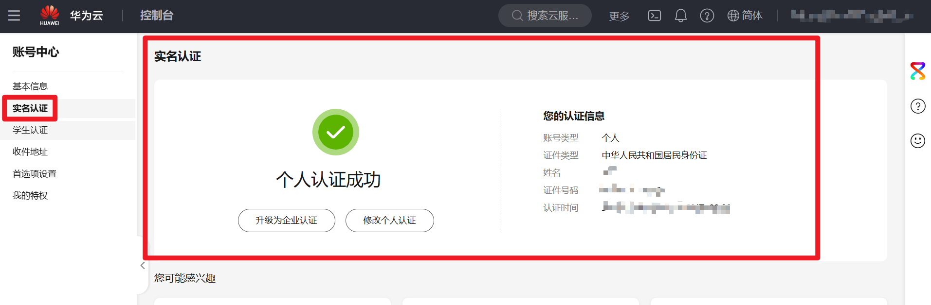 3. 点击右上角个人账号,进入“账号中心”,完成实名认证