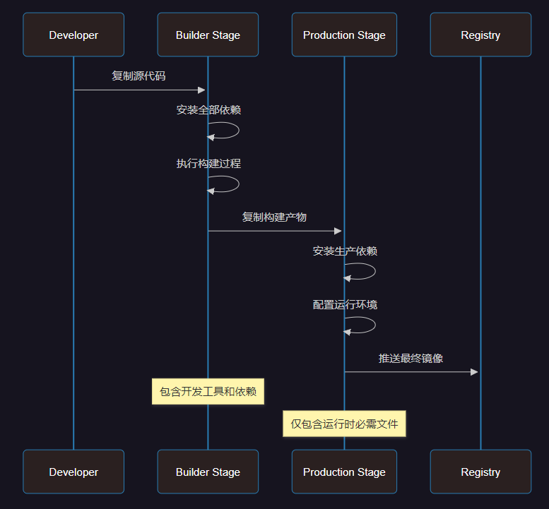 • 依赖精简: 生产阶段仅安装运行时依赖