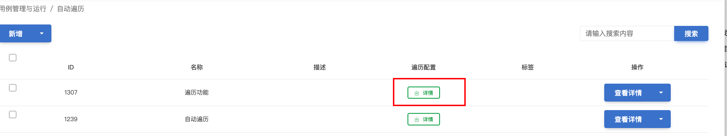 在【自动遍历】中找到配置,点击【查看详情】→【运行】