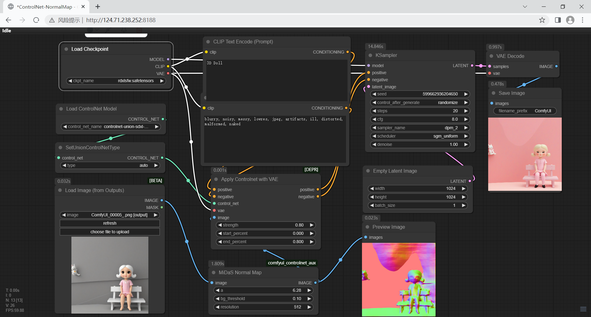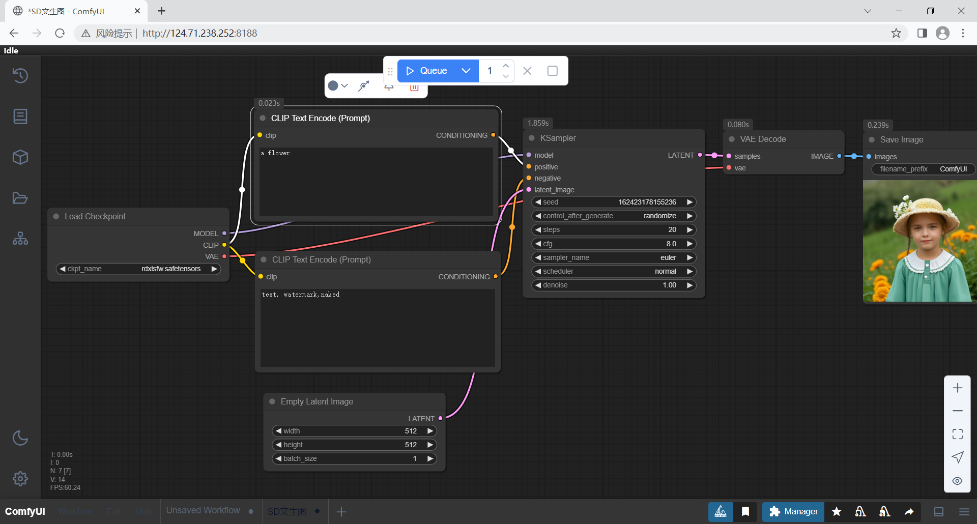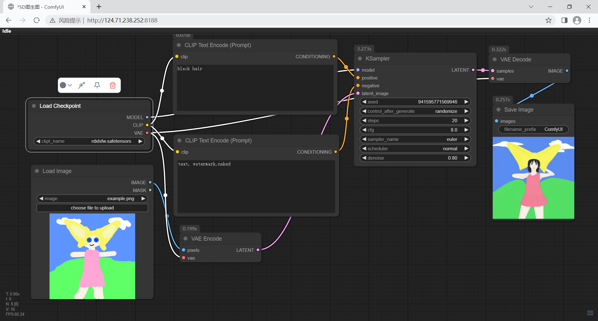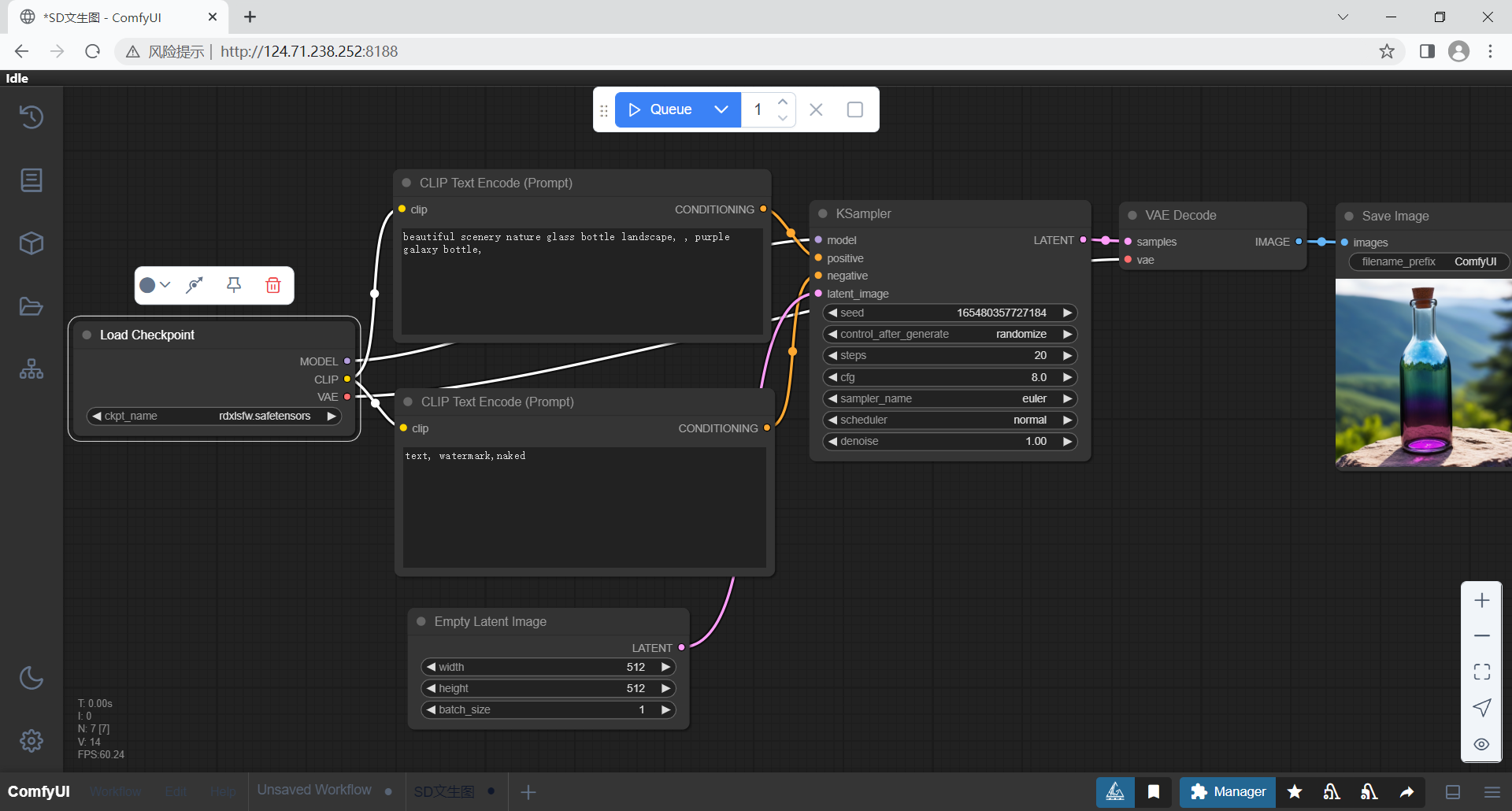 最后,VAE 解码器将潜空间中的低维表示解码为高质量像素图像,完成从抽象特征到可视化结果的转换。这一节点虽处于流程末端,却是输出最终图像不可或缺的一环。