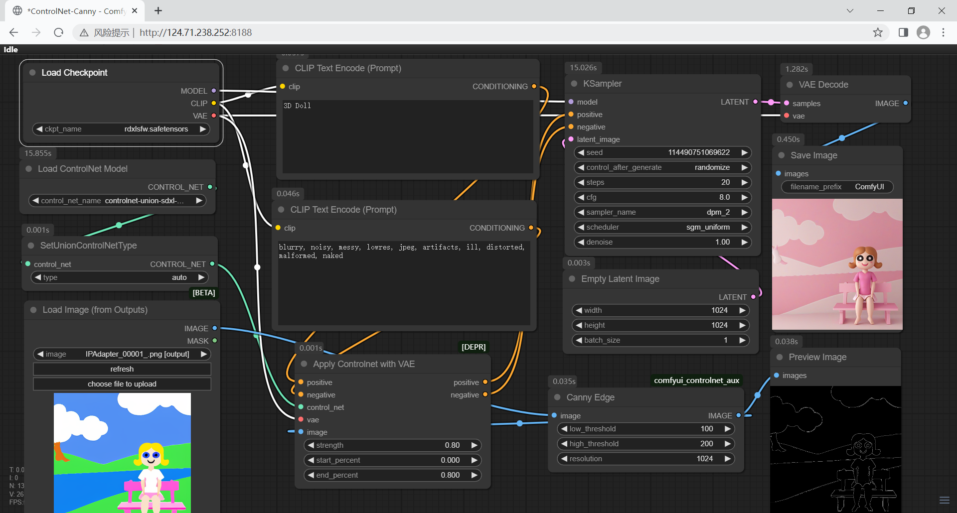 - 使用一张铅笔素描(Canny Edge)作为ControlNet输入,锁定人物的复杂姿态和构图。