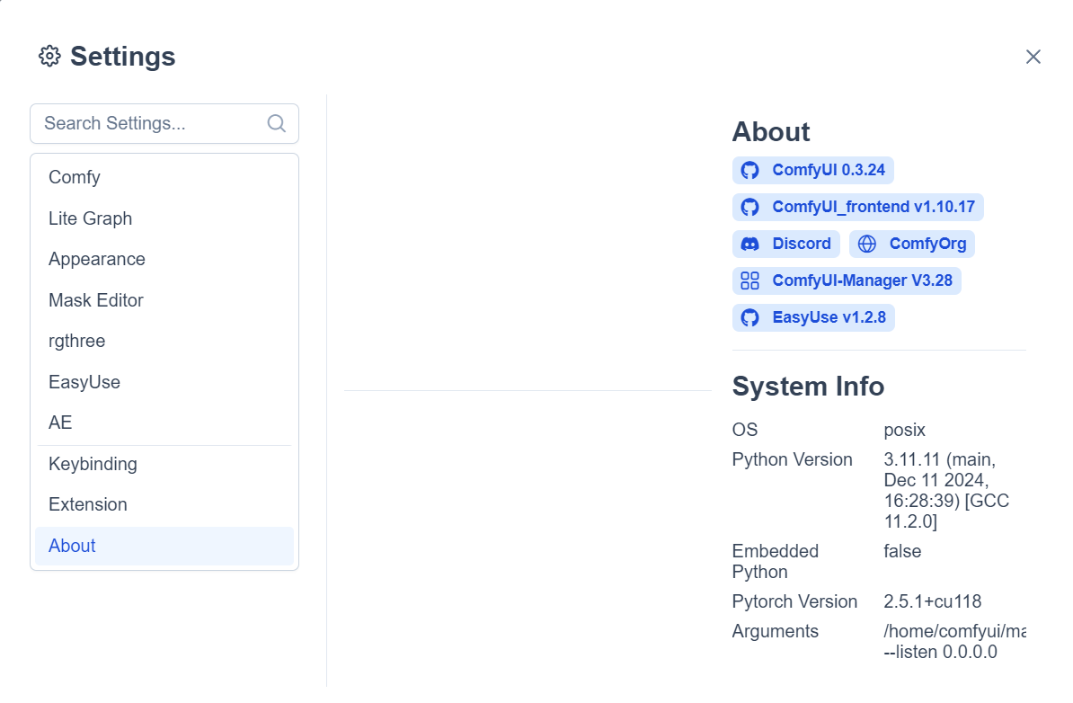 Arguments /home/comfyui/main.py --listen 0.0.0.0