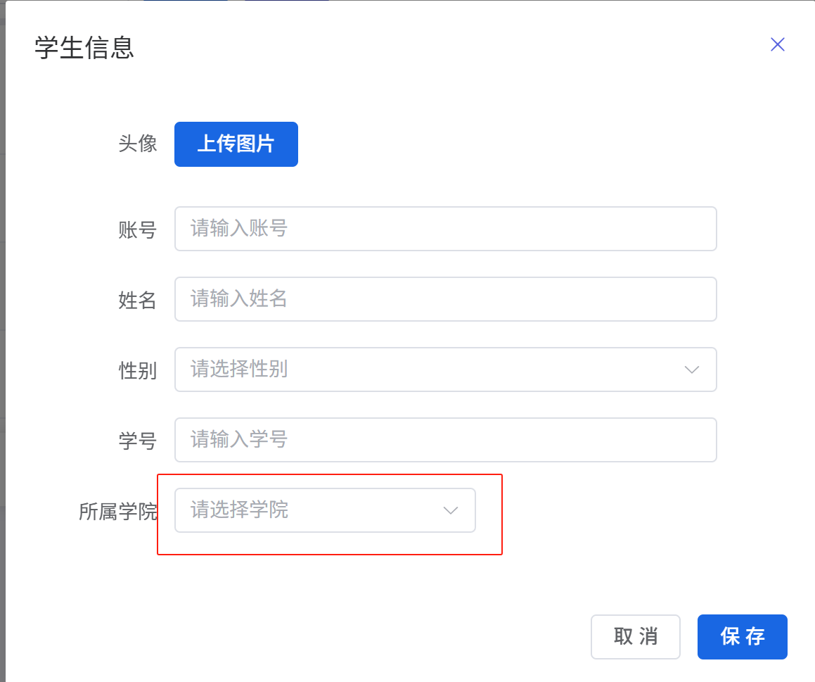 完善新增或编辑学生时的院校信息显示