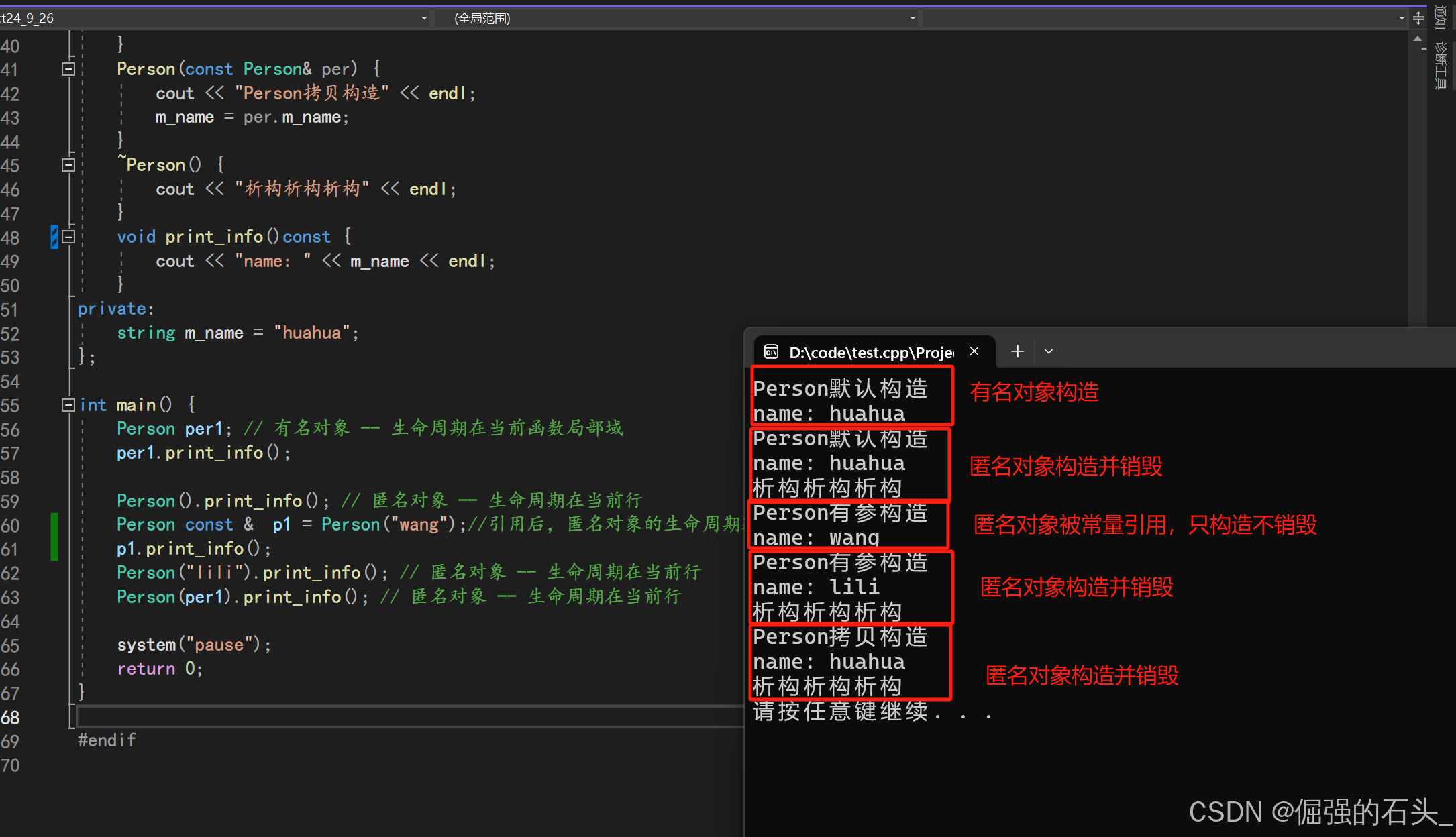 Person(per1).print_info(); // 匿名对象 -- 生命周期在当前行