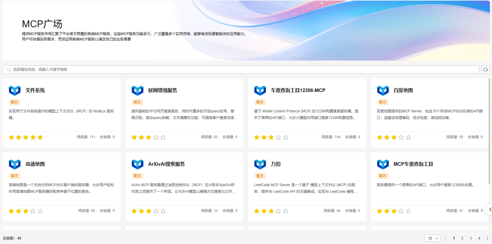 Versatile资产中心提供应用、MCP、插件、提示词等AI资产的共享,包括系统预置资产、开发者上传资产等,加速AI应用的开发以及公共资产的沉淀。