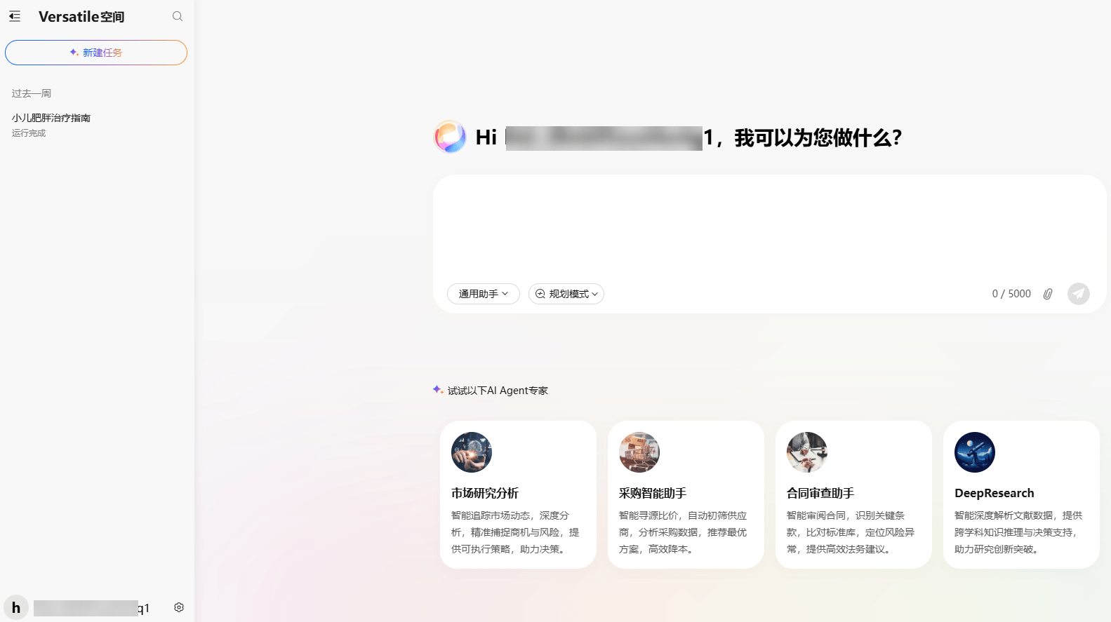 Versatile空间集成通用型AI助手以及各专家Agent,打造企业级智能协作统一入口,通过自主任务规划及多工具协同等,帮助用户完成复杂任务。