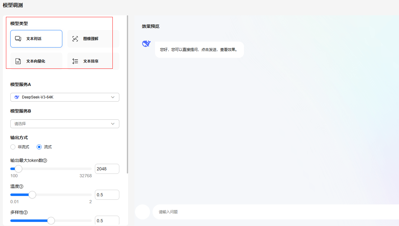 · 支持模型调测,对比不同模型的效果