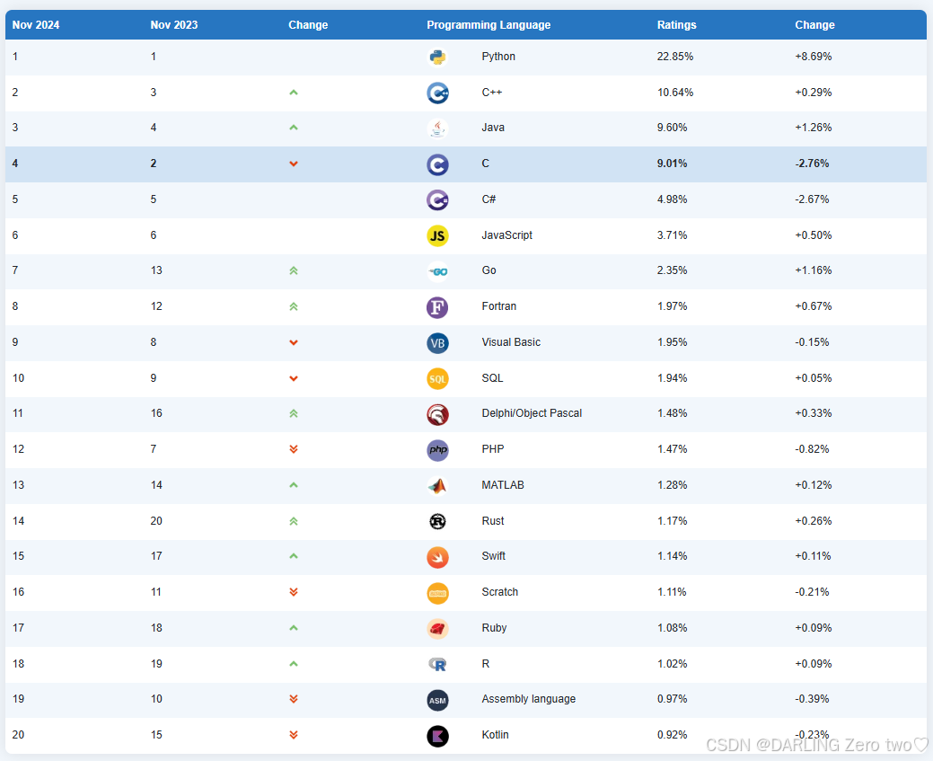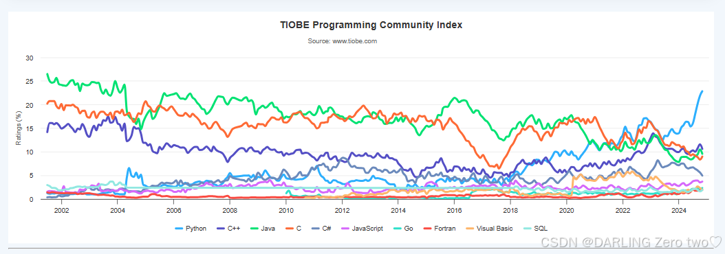 近几年 C++ 的上涨趋势还是比较明显的,虽然说还比不上 python 泛用性强大,但是 C++作为常年排名前几的语言,学习起来还是特别有价值的