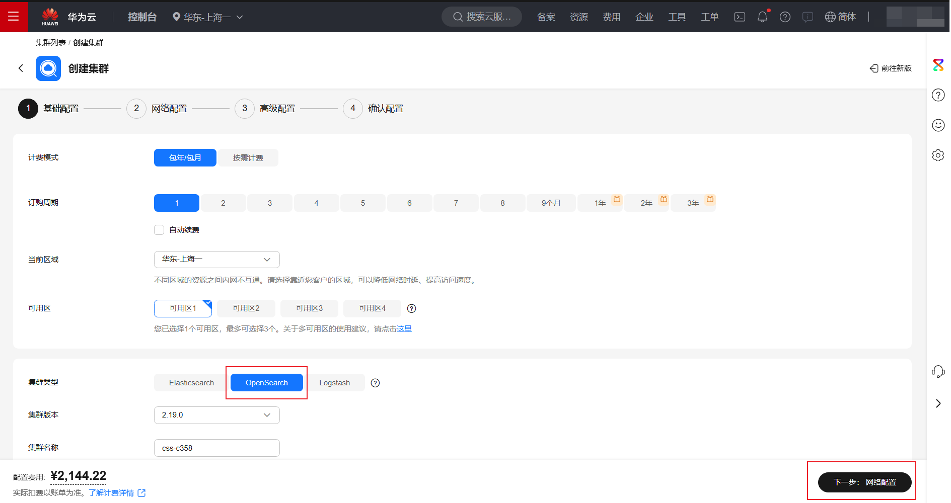 选择配置规格后,点击下一步