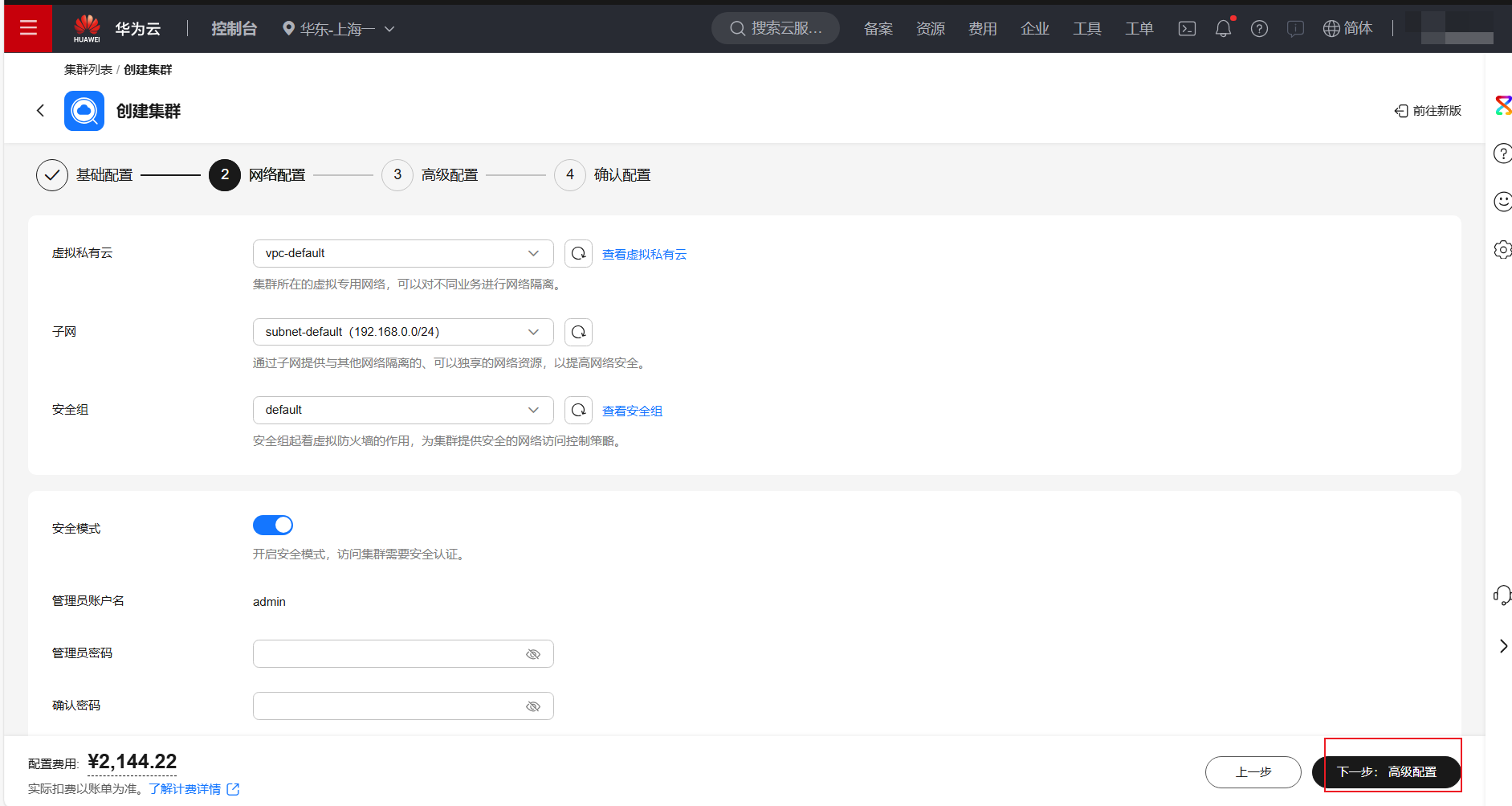 设置高级配置后,点击下一步