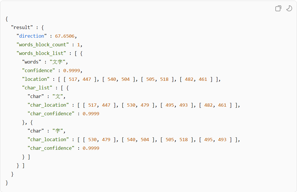 传入图片的base64编码进行文字识别,识别过程不校验图片倾斜角度,并关闭快速模式