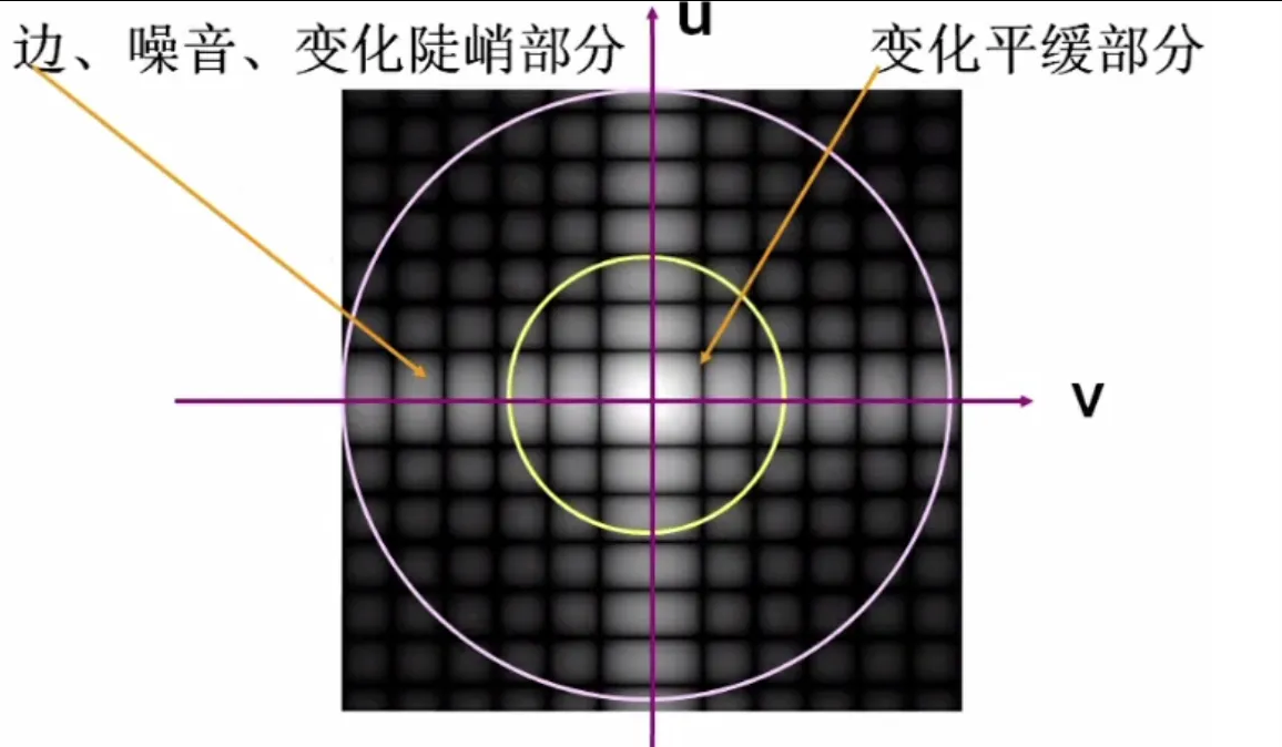 抑制高频噪声,保留低频轮廓,效果类似空域的平滑滤波,但全局平滑更均匀。