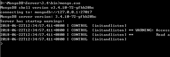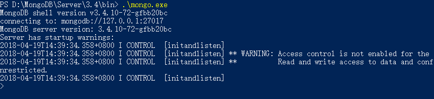 2、使用mongodb自带的javascript shell(mongo.exe)连接