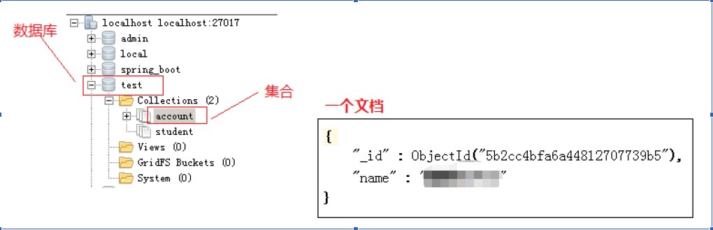 mongodb中文档的格式是json格式,下边就是一个文档,包括两个key:_id主键和name