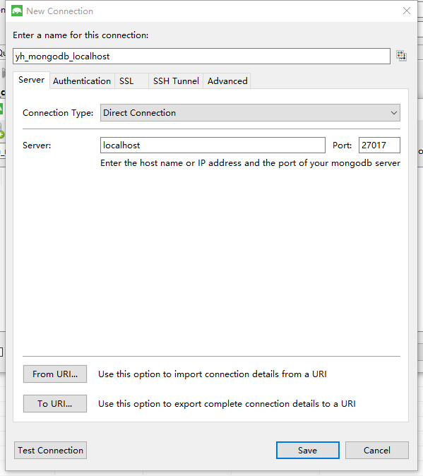 port:端口,可不填,默认27017