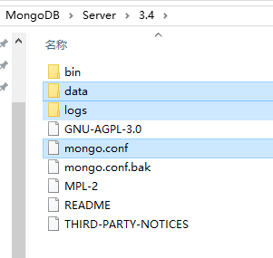 创建几个文件夹具体如下:数据库路径(data目录)、日志路径(logs目录)和日志文件(mongo.log文件)