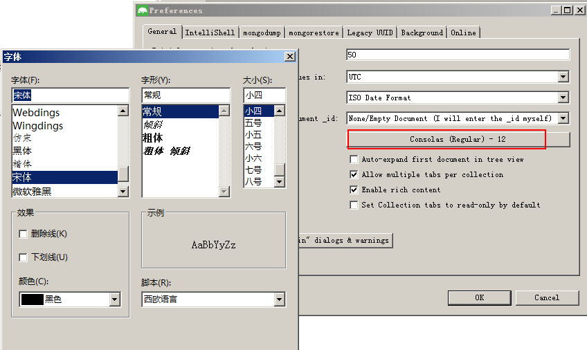 默认Studio3t的字体太小,需要修改字体: 点击菜单:Edit--->Preferences
