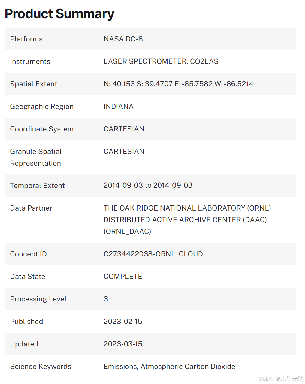 该数据集提供了 2014 年 9 月 3 日早高峰时段交通排放繁忙时印第安纳州印第安纳波利斯 (IN) 上空大气二氧化碳 (CO2) 的现场机载测量数据。其中还包括固定源排放。通过观测到的市区下风处的二氧化碳羽流以及盛行风速和风向,可以估算出排放率。二氧化碳是使用美国宇航局喷气推进实验室 (JPL) 开发的机载二氧化碳激光吸收光谱仪 (JPL CO2LAS) 测量的,以展示机载积分路径差分吸收 (IPDA) 激光雷达技术作为从太空测量全球二氧化碳浓度的基础。CO2LAS 使用连续波外差技术测量飞机和地面之间的加权柱平均二氧化碳。该仪器的工作波长为 2.05 微米,经过优化可增强对边界层二氧化碳的灵敏度。在此次夜间、白天和季节二氧化碳排放主动监测(ASCENDS)空中部署期间,测量数据在一架 DC-8 飞机上进行。数据以 HDF-5 格式提供。