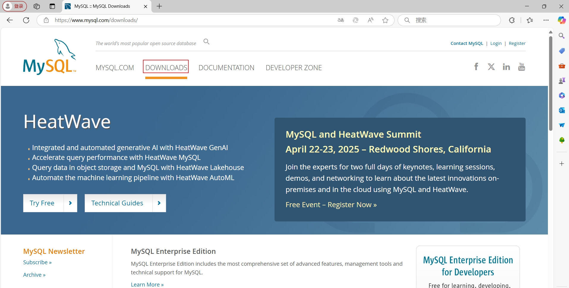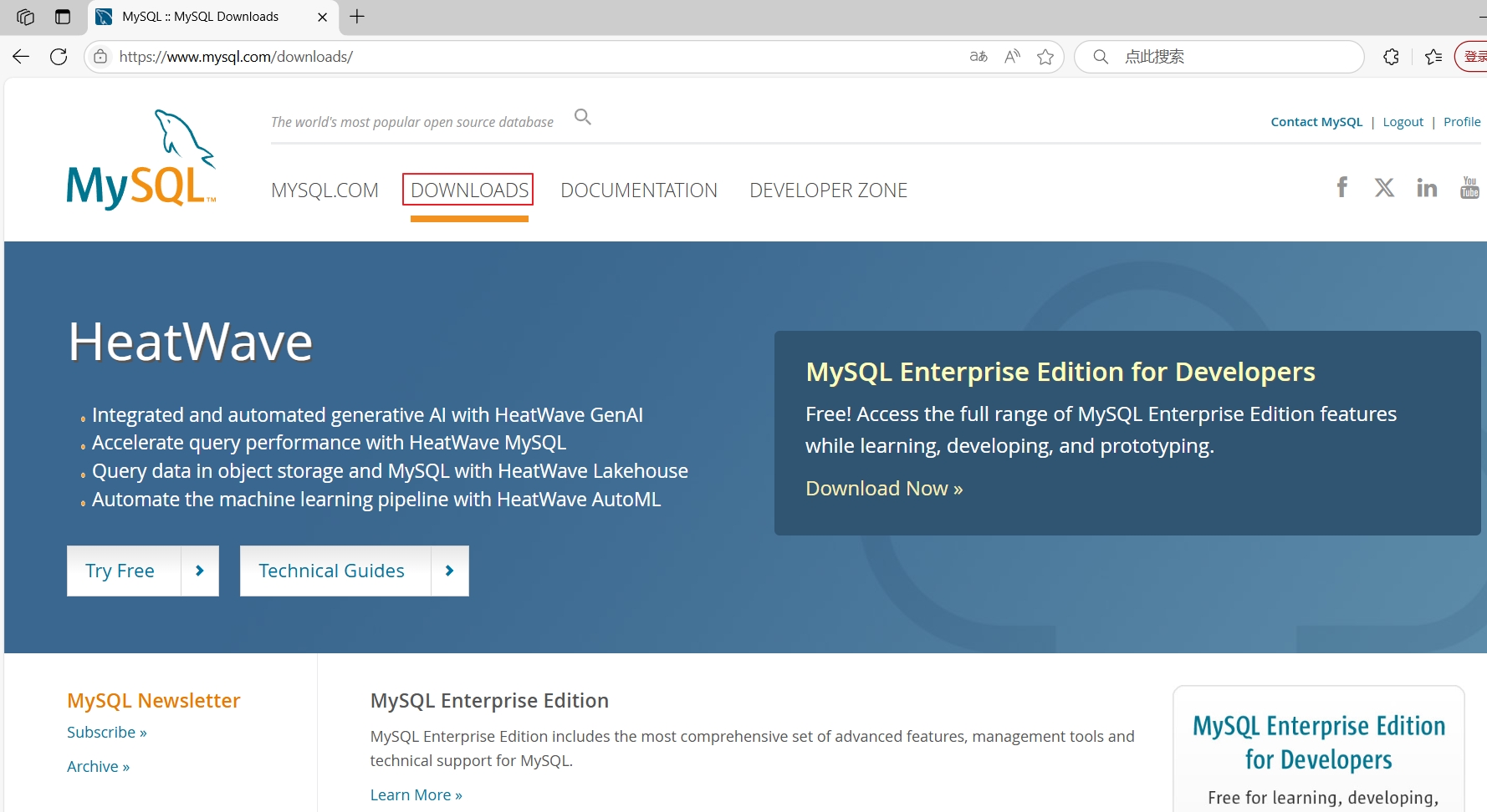 MySQL二进制包下载,去“https://www.mysql.com/”网站下载,选择“DOWNLOADS”,如图79所示。