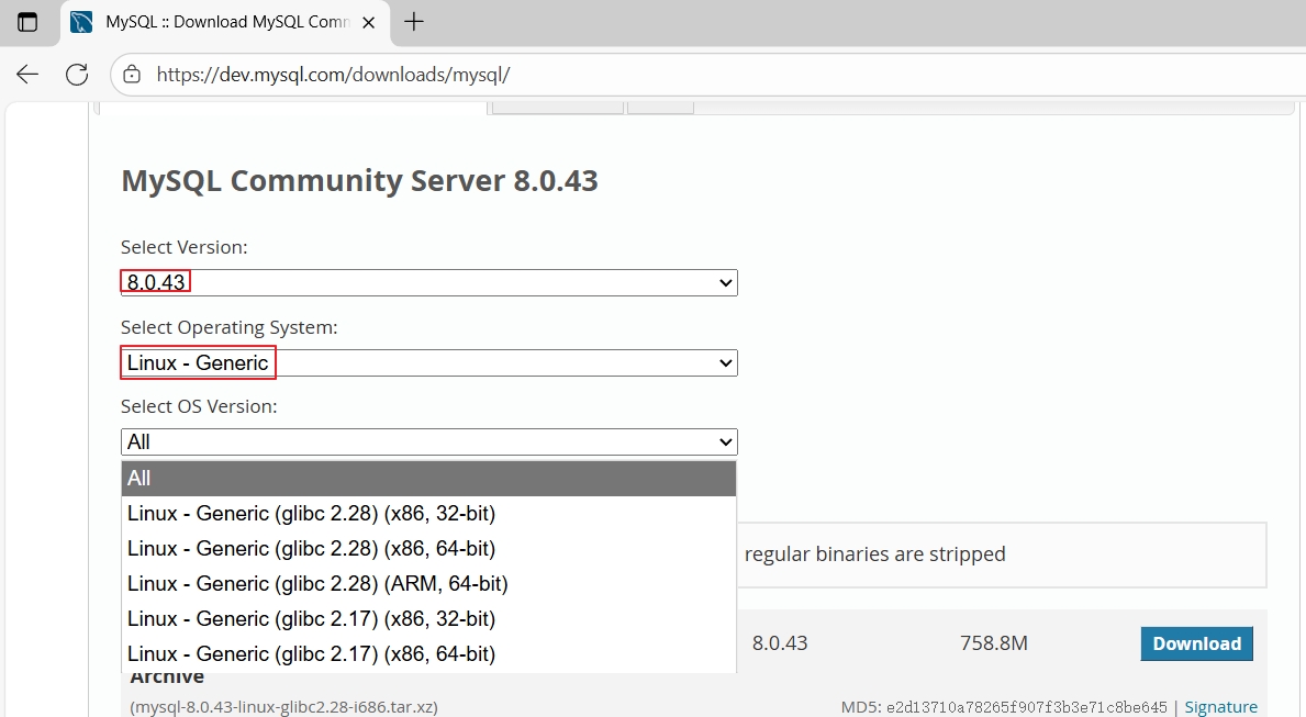 wget https://cdn.mysql.com//Downloads/MySQL-8.4/mysql-8.4.6-linux-glibc2.28-x86_64.tar.xz