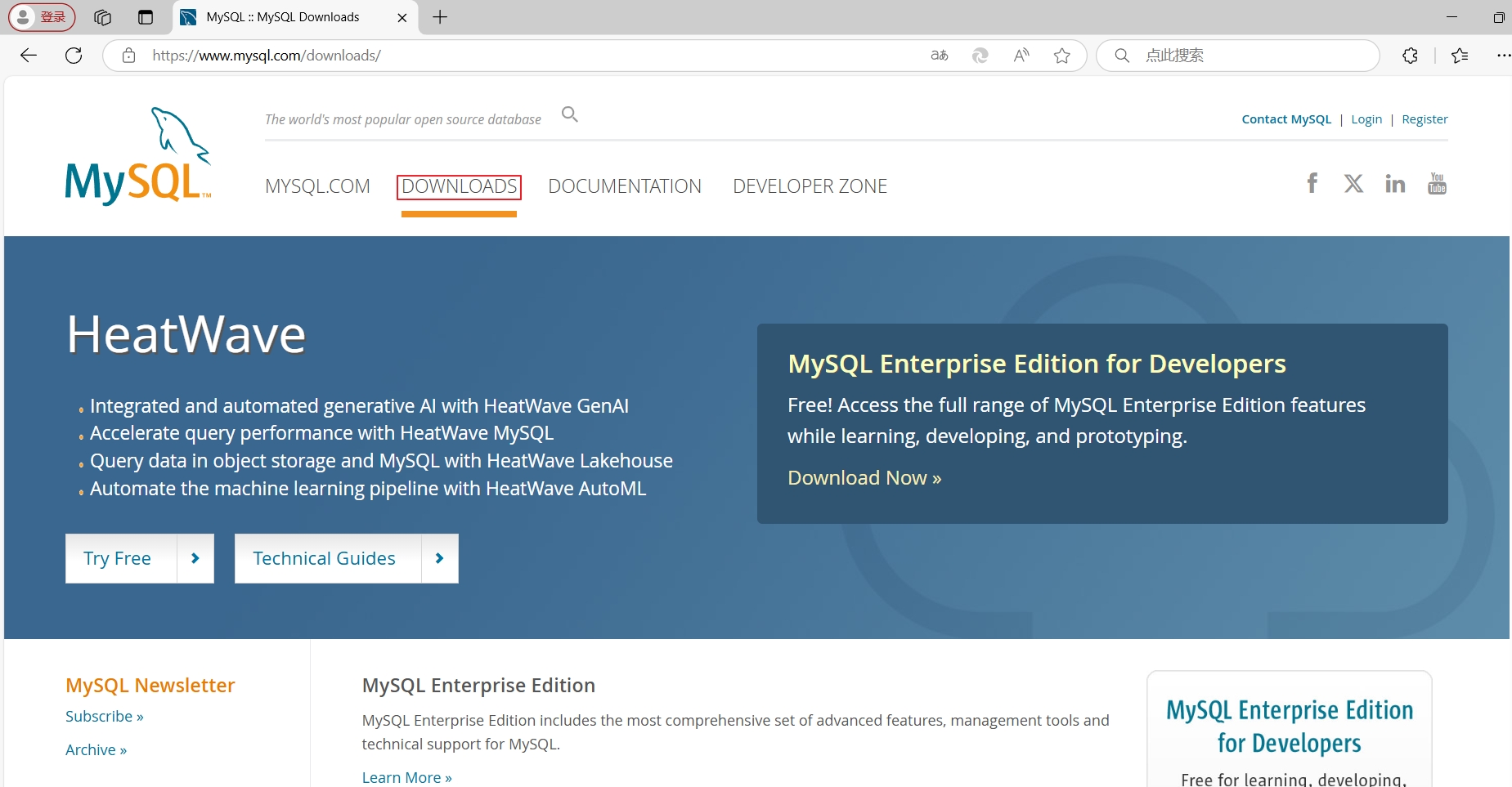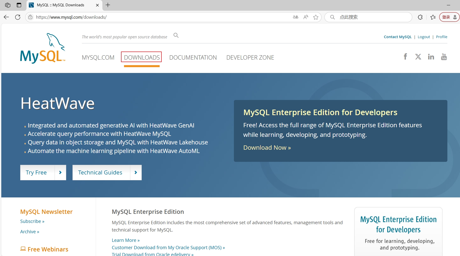 MySQL源码包下载,去“https://www.mysql.com/”网站下载,选择“DOWNLOADS”,如图88所示。