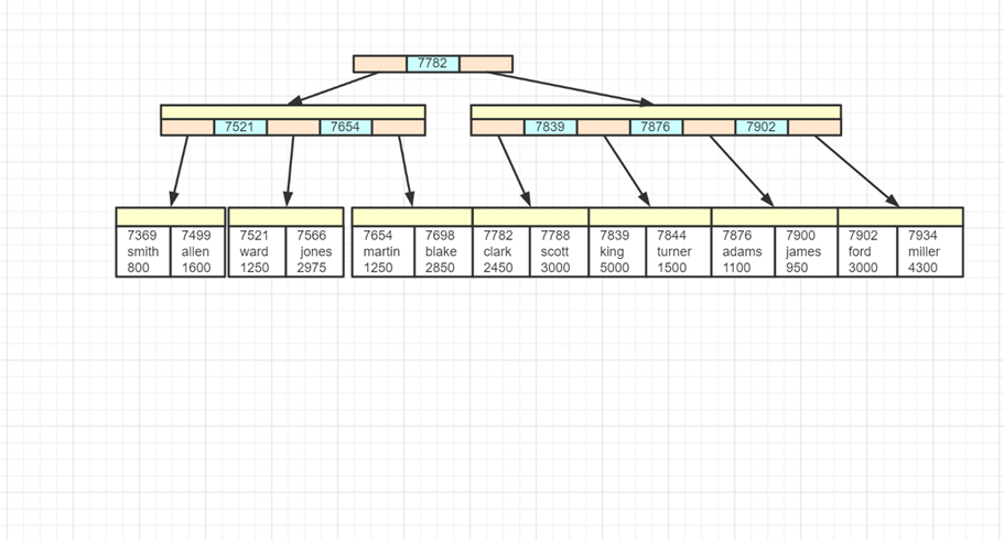 - 聚簇索引:主键值作为索引数据,叶子节点还包含了所有字段数据,索引和数据是存储在一起的