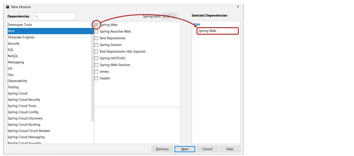 ②:选择当前模块需要使用的技术集