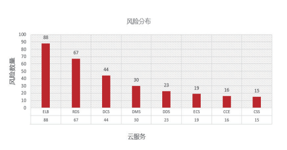 如图所示:关键核心资源累积风险高,风险项重点集中在ELB、DCS、RDS、DDS、ECS、容器和网络,数据和计算的高敏感区域存在失效隐患,价值数据及核心业务易损。