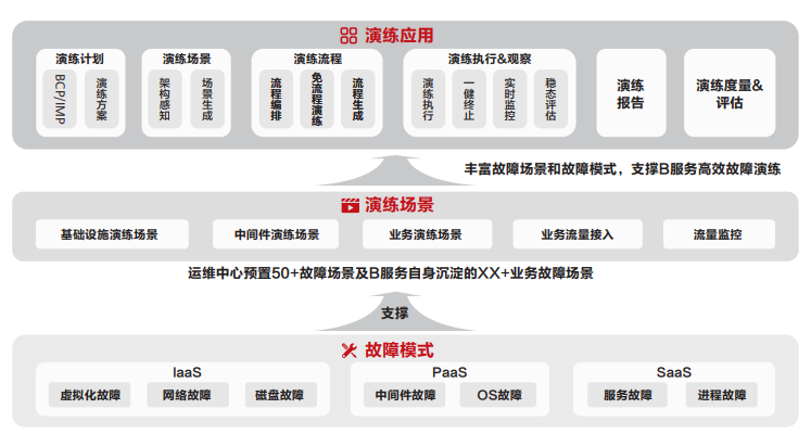 - 稳定性管理:通过一键式单点故障注入能力,10分钟自动化完成一次故障演练,单次故障演练时间下降70%,演练场景100%覆盖历史发生概率高、影响大的故障;