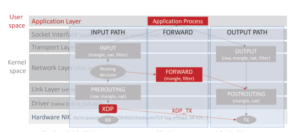 为突破性能瓶颈,需尽可能绕开 Linux 协议栈,Linux 原生的"kernel-bypass"技术 XDP(eXpress Data Path)是可行方案之一。它通过在 Linux 网络入口处运行 eBPF 程序处理原始报文,能实现高性能、低 CPU 开销的报文处理与转发。