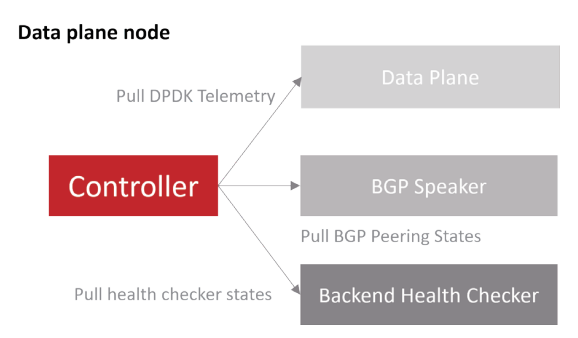 首先是数据面节点的自我健康检查机制:Controller 会持续拉取节点的核心数据(包括数据面状态与指标、BGP speaker 状态、后端健康检查结果等),综合判断节点健康度。一旦检测到异常,会立即触发恢复或隔离动作,例如进程重启、配置动态调整,或直接将节点隔离。