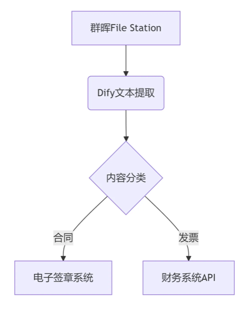 这个工作流会自动从群晖NAS中获取文档,进行分类,并推送到相应的处理系统。
