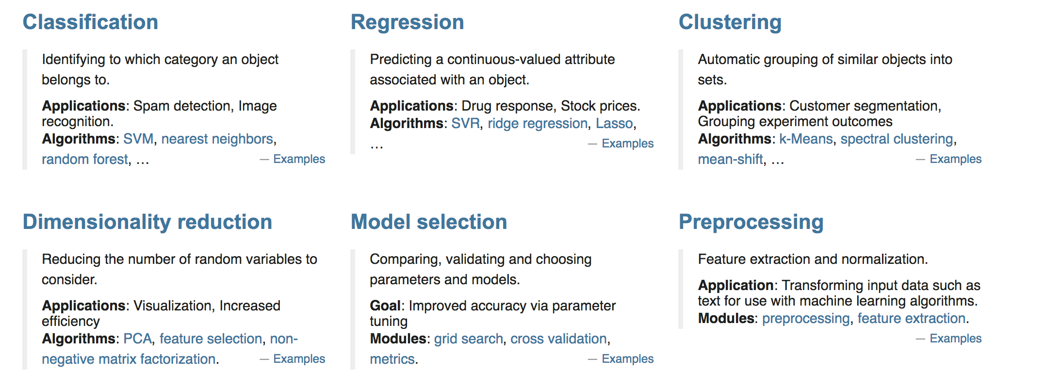- Scikit-learn包括许多知名的机器学习算法的实现