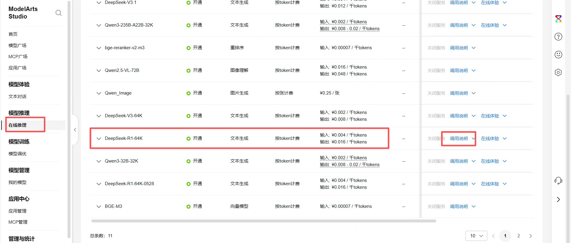 ModelArts Studio(MaaS)平台:是华为云推出的一款大模型即服务平台,可以一站式的对业界主流开源大模型进行部署托管,同时开放大模型API服务,可以结合业界主流Agent开发框架,轻松构建AI Agent应用。