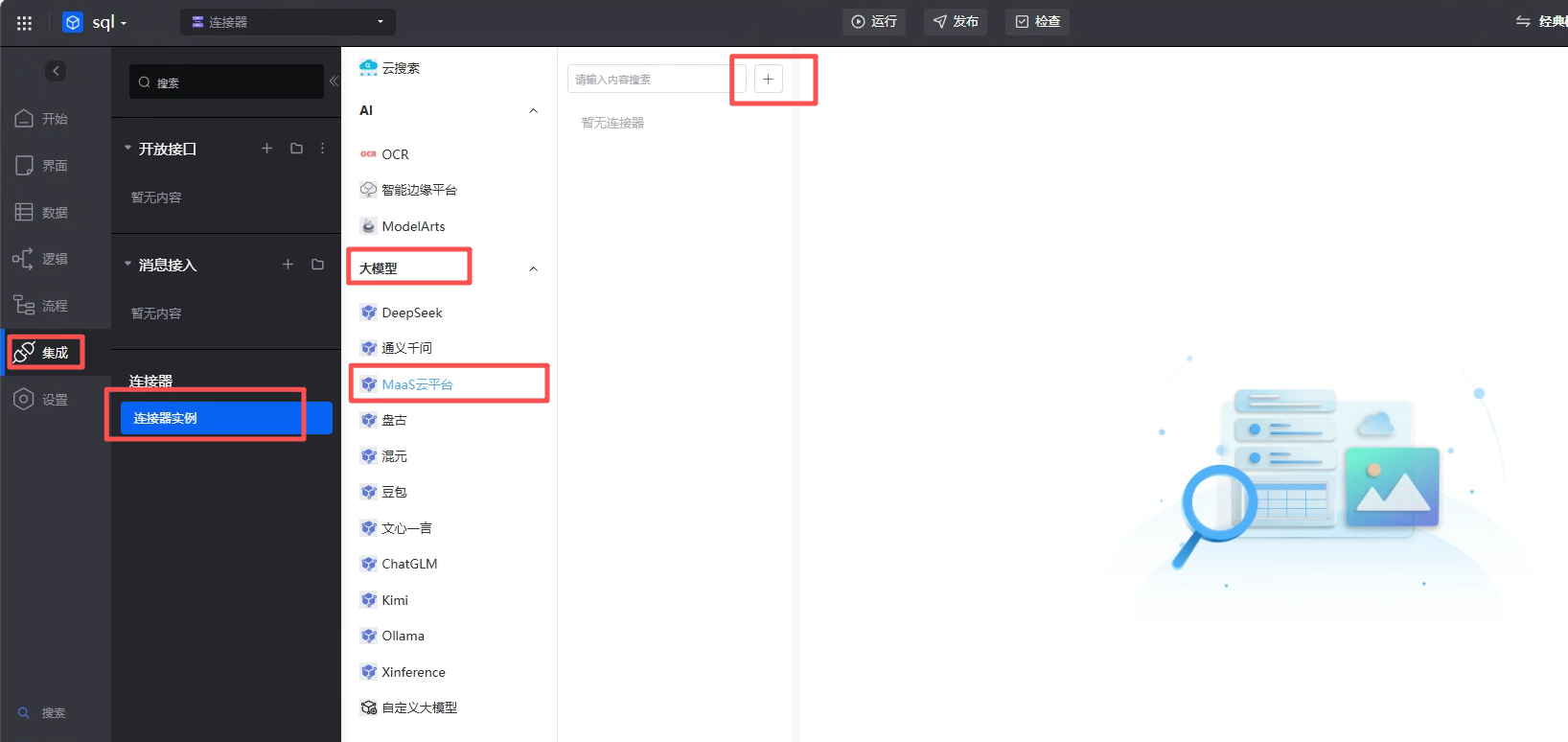 点击左侧集成 - 连接器实例 - 大模型 - MaaS云平台: