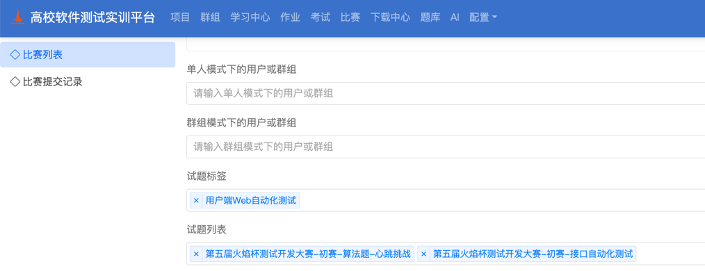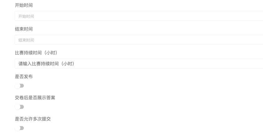 平台内置比赛、作业、考试功能,支持快速发布赛题、配置考试时间与考试规则。 -