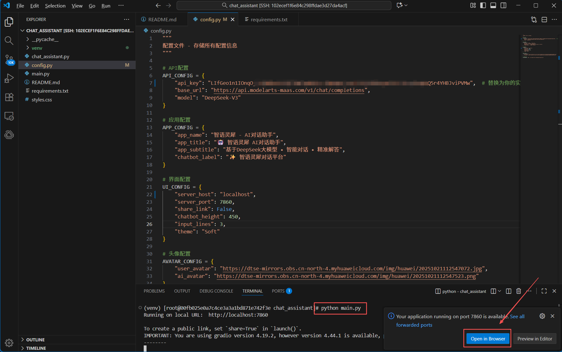 4. GitCode拉取智语灵犀 - AI对话助手代码,安装依赖,修改配置参数API Key;