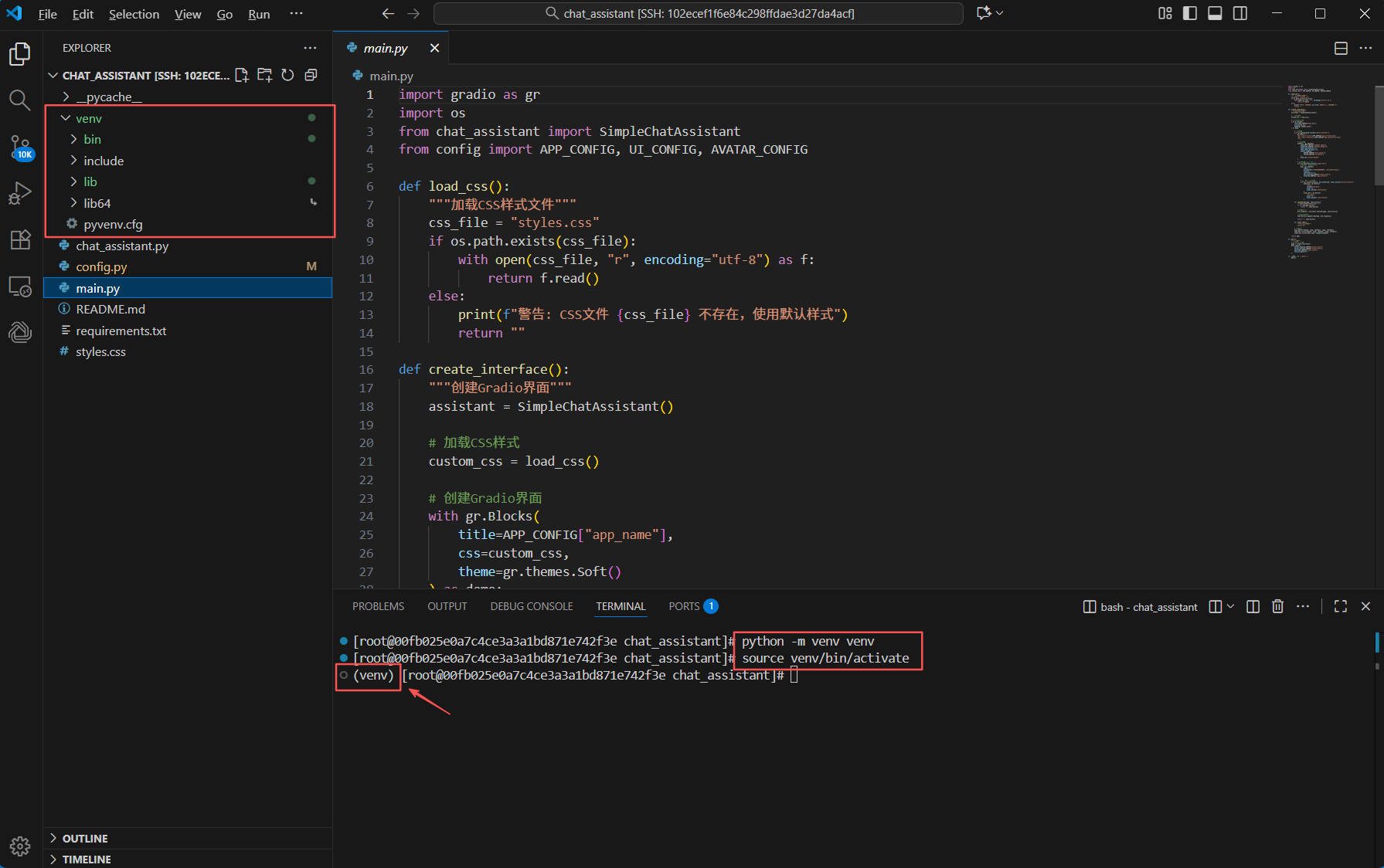 在VS Code终端窗口中运行如下命令,启动智语灵犀 - AI对话助手。