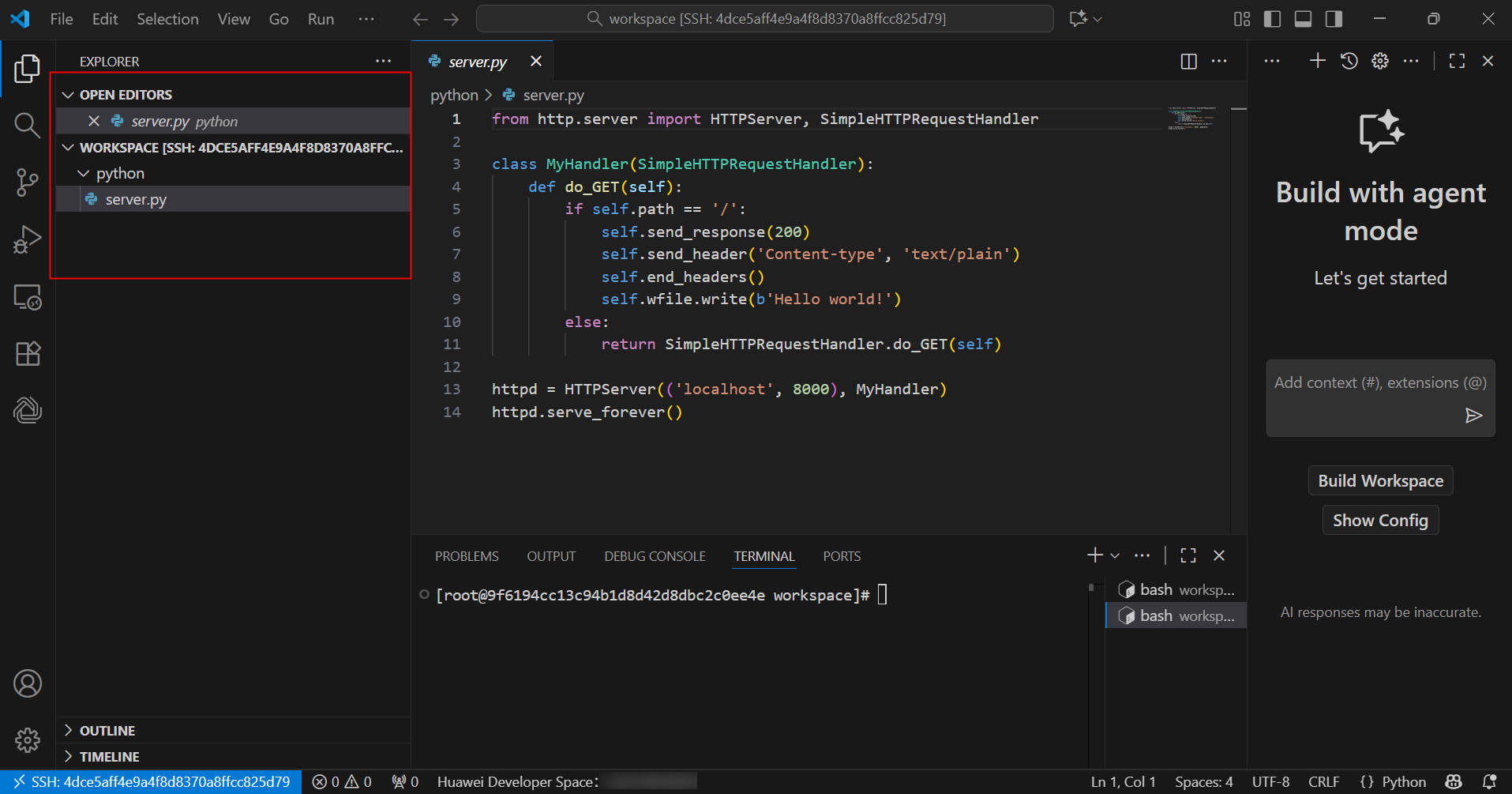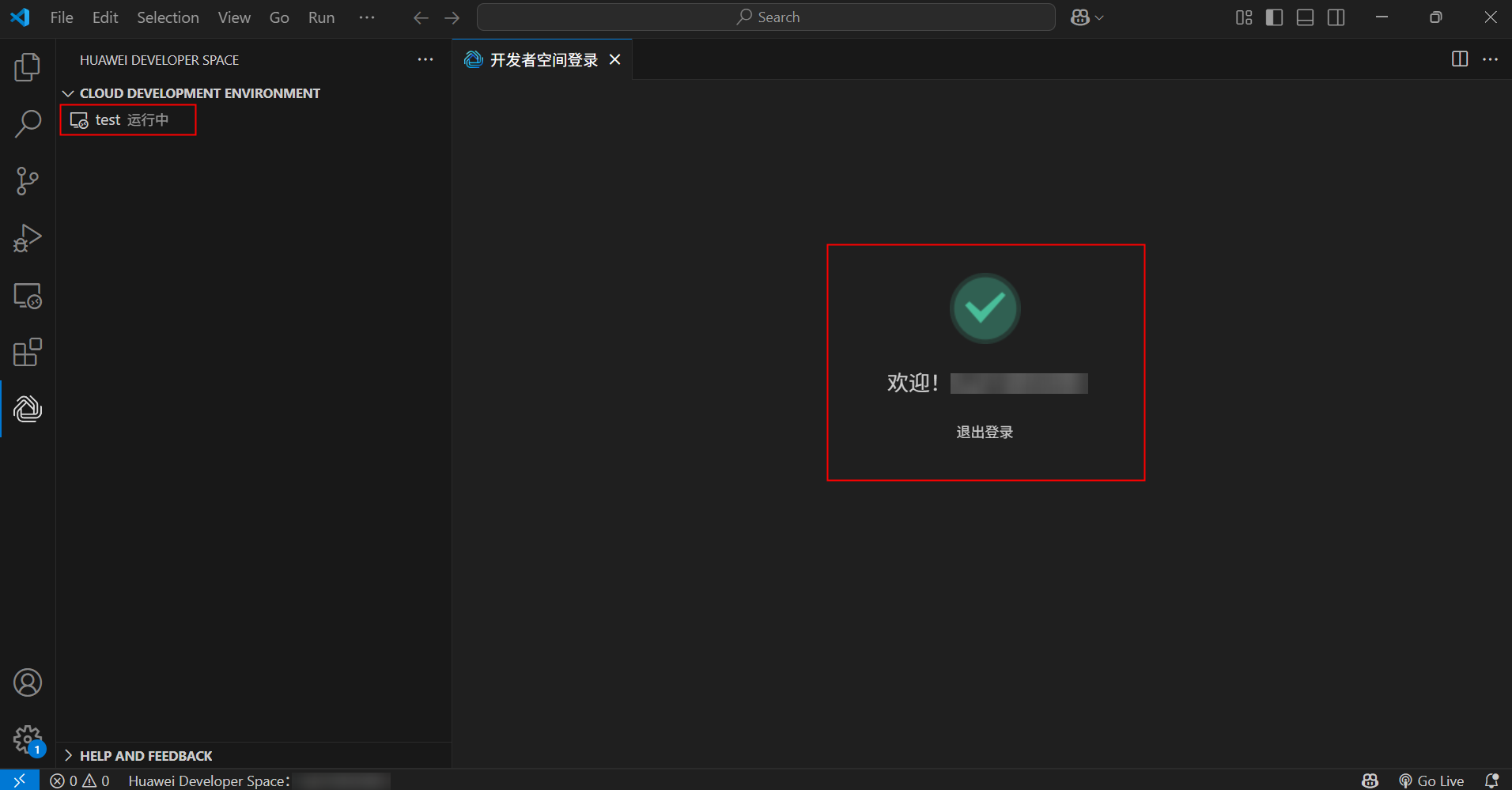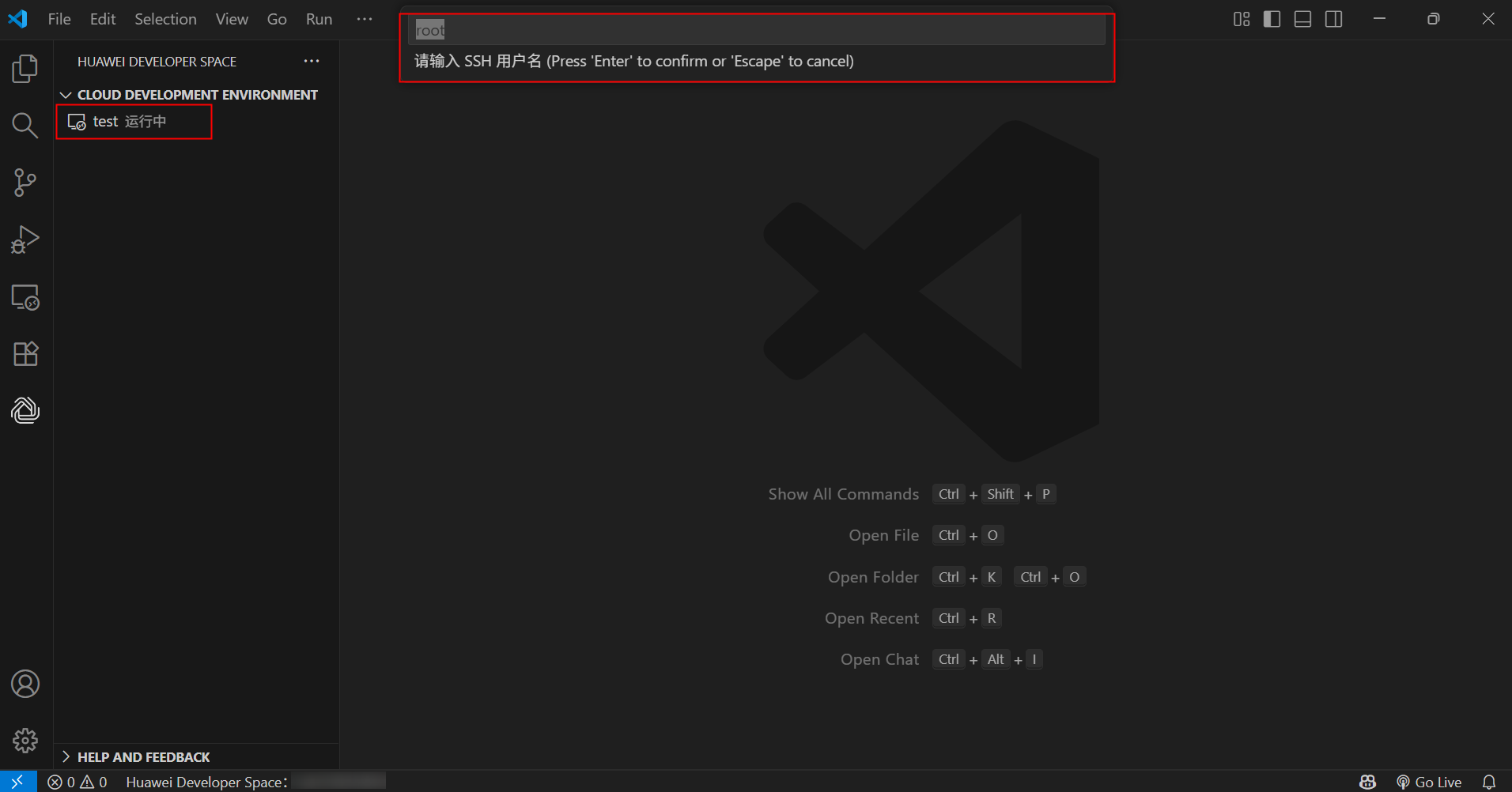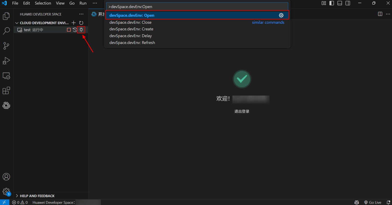 2. PC本地通过VS Code安装Huawei Developer Space插件,远程连接操作云开发环境(容器)的;