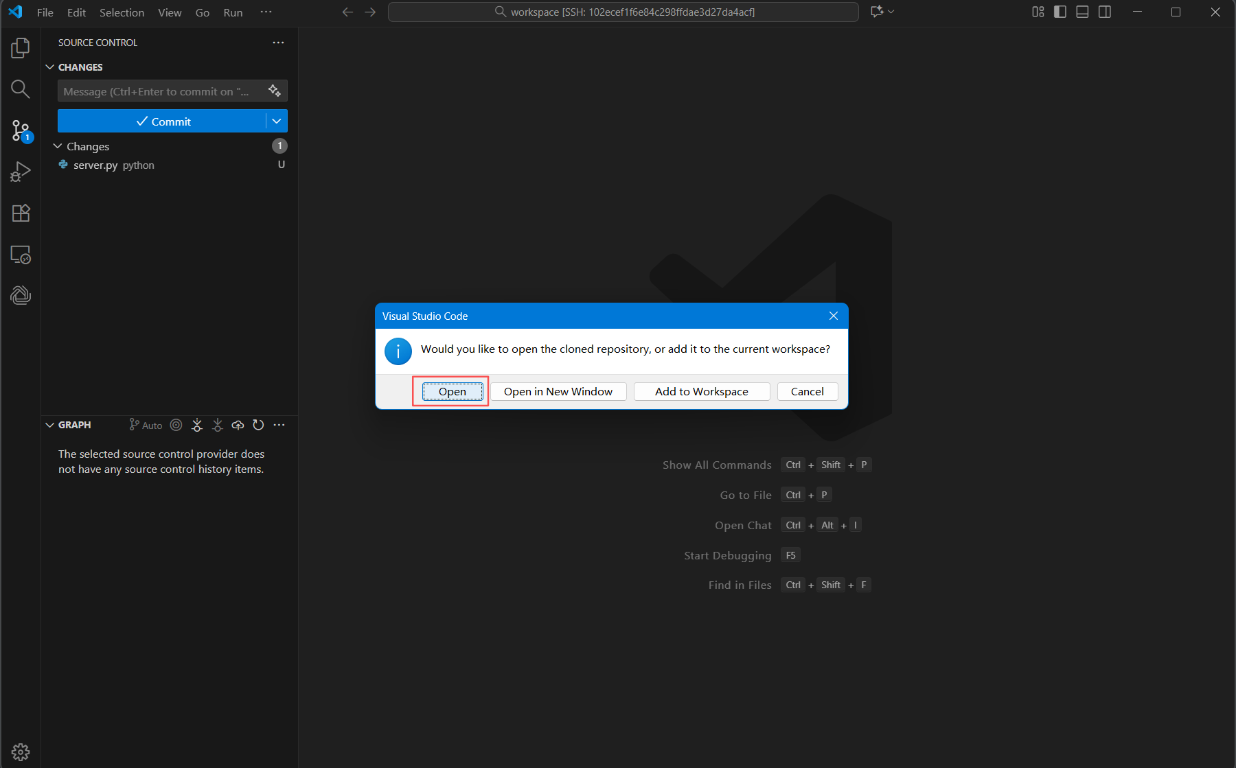 然后点Open,将此目录设置为本地代码仓。