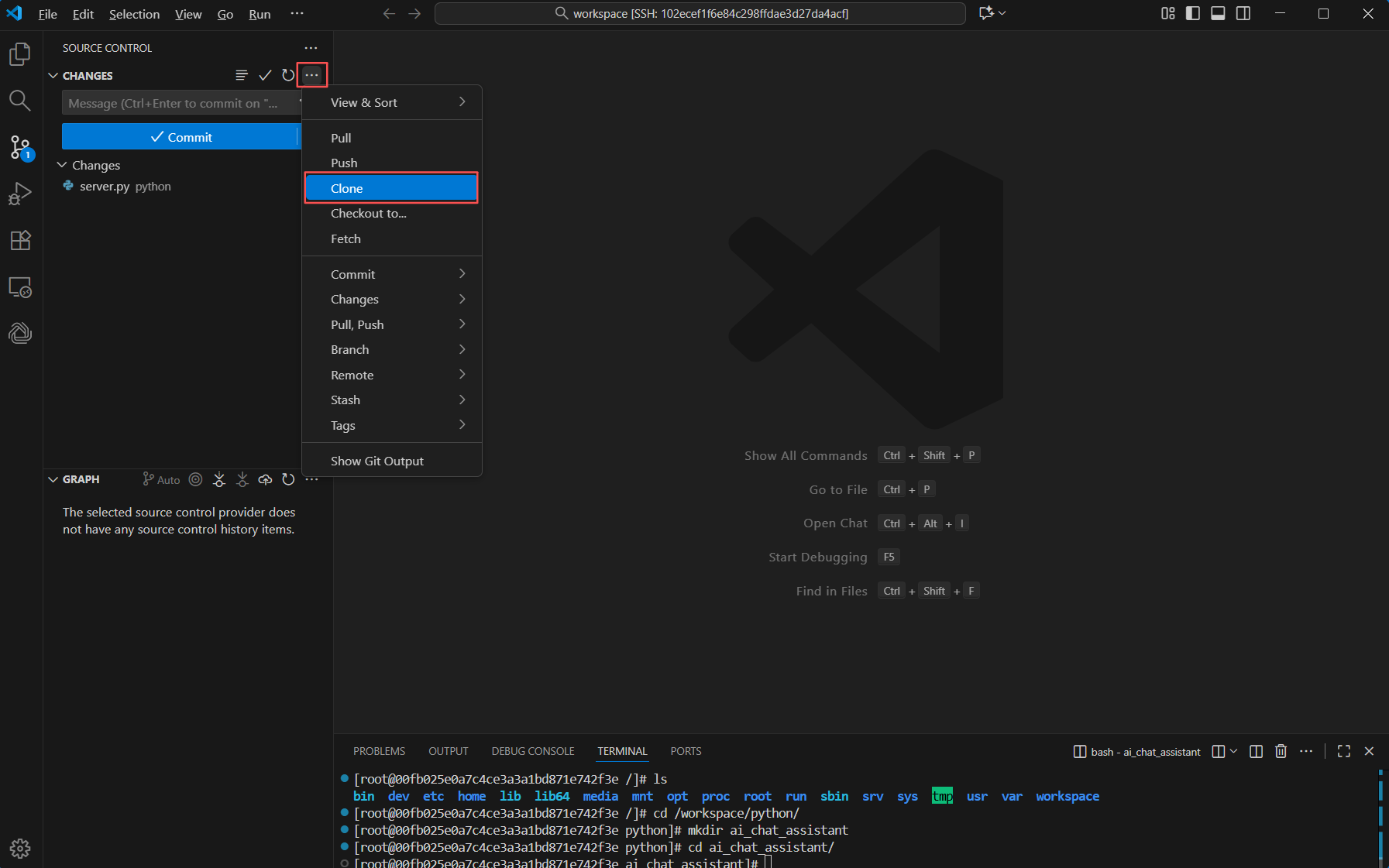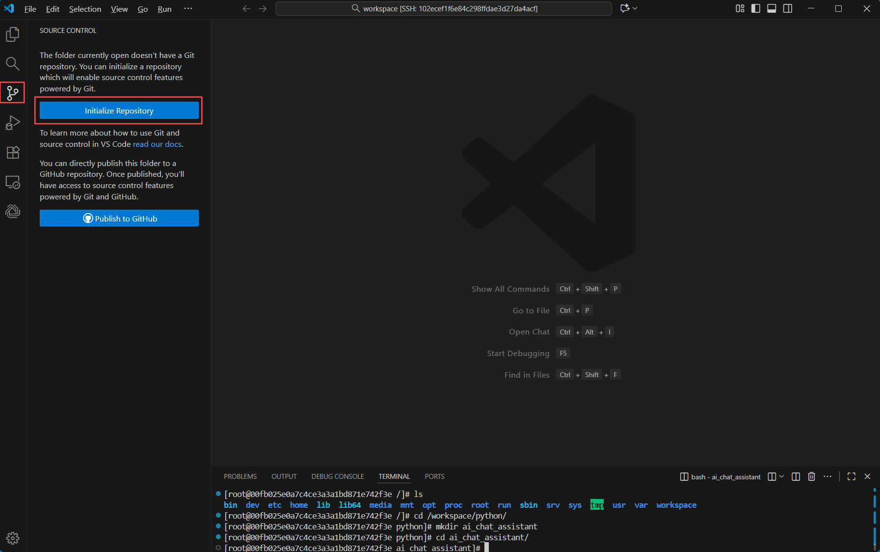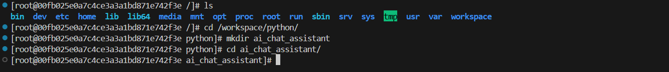 cd /workspace/python/ mkdir ai_chat_assistant cd ai_chat_assistant
