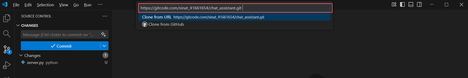 输入代码仓地址,Clone from URL:https://gitcode.com/sinat_41661654/chat_assistant.git