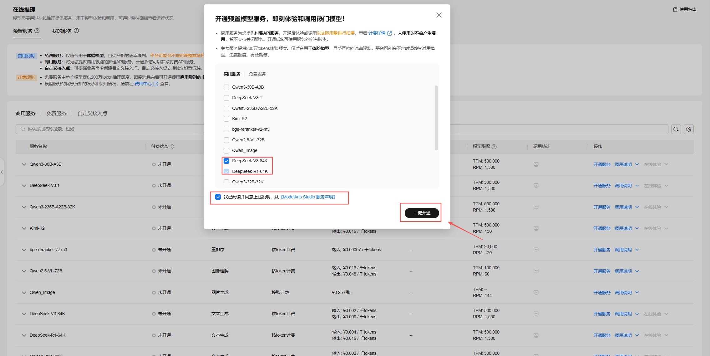 4.2 开通商用模型服务