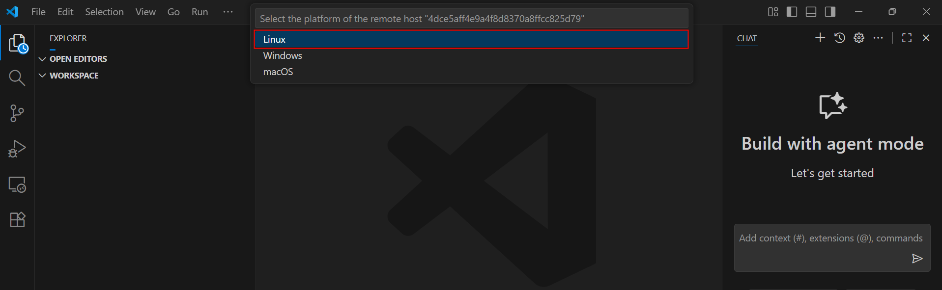 此时VS Code自动打开一个新的窗口,并提示选择连接的操作系统,此处选择Linux。