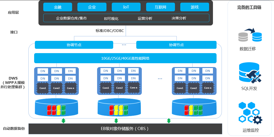 DWS管理控制台提供了集群概览、性能监控等功能,但不直接支持表结构查看,需结合Data Studio或gsql使用。